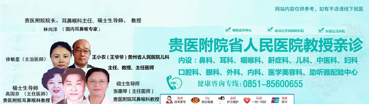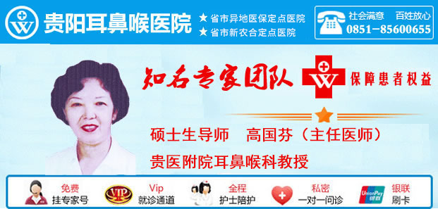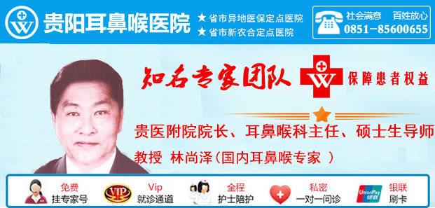 贵阳耳鼻喉医院是西南地区诊治耳鼻咽喉疾病的二级专科医院。开设有:鼻科、耳科、咽喉科、医学美容科、外科、妇科、内科、中医科、口腔科、眼科等专科。设有50张病床,由国内耳鼻咽喉专家中华医学会耳鼻咽喉科学会贵州分会名誉主任,原贵阳医学院附属医院副院长兼耳鼻咽喉科主任林尚泽教授任院长,高国芬等多名贵阳医学院附属医院有三十年以上丰富临床经验的教授,副教授任各专科主任,擅长诊治耳鼻咽喉和头颈外科等各种疾病。 我院拥有目前国内外治疗耳鼻咽喉疾病的先进的医疗设备:德国第三代自动控制单针双低温射频消融手术系统、美国史赛克电视健康鼻内窥镜.. 了解更多>>